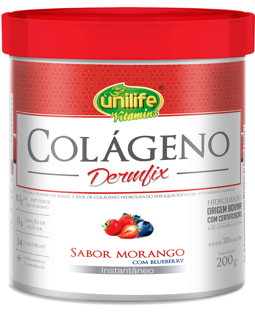 Colágeno hidrolisado em pó - Dermfix - Sabor morango com blueberry