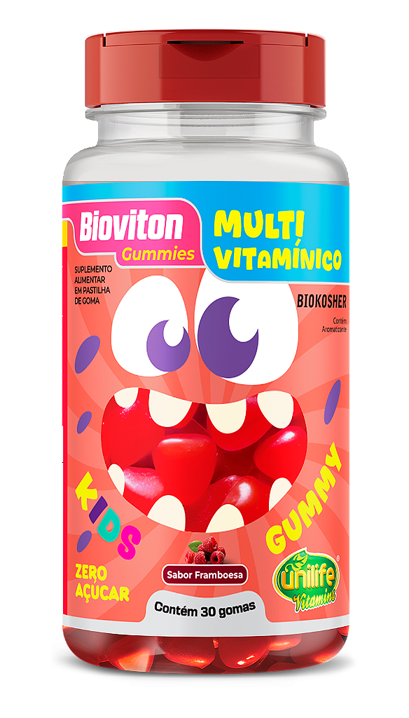 Multivitamínico Bioviton - Sabor Franboesa - KIDS - 30 Gomas Mastigáveis